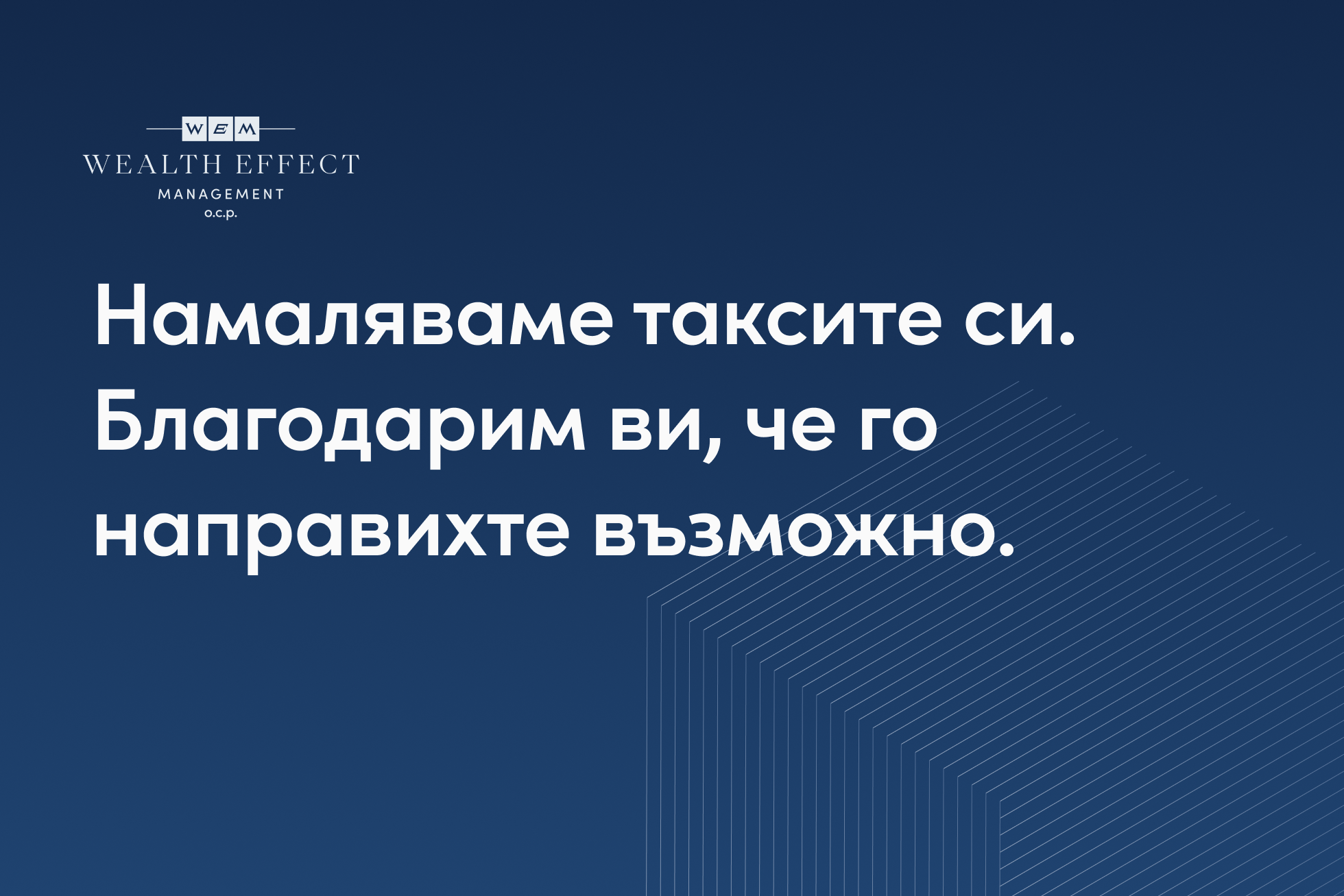 Намаляваме таксите си и ви благодарим, че го направихте възможно.